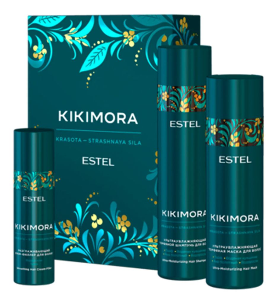 От производителя:Набор для волос Kikimora от российского косметического бренда ESTEL вернет красоту и шелковистость сухим и ломким прядям. Это концентрат полезных веществ из обиталища сказочной Кикиморы. В его состав вошли болотные растения и продукты, обитающие в озерах и реках. Они наполняют здоровьем и силой не только волосы, но и их корни.В набор входят:Шампунь для интенсивного увлажнения волос Kikimora мягко и бережно очищает пряди и кожу головы от загрязнений, кожного жира и стайлинговых средств. Экстракт цветов белой кувшинки в составе средства наполняет волосы силой и блеском. Экстракт красных водорослей насыщает кутикулу волос протеинами и коллагеном, способствующими удержанию влаги. Торф наполняет волосы соединениями, способствующими восстановлению структуры волос. А экстракт аира болотного стимулирует питание волос от корней. Также в состав шампуня входит бетаин, способствующий укреплению волос, их увлажнению и смягчению. Шампунь обладает тонким ароматом речных цветов и моря, которые улучшают настроение и дарят бодрость.Торфяная маска Kikimora создана для глубокого увлажнения сухих и безжизненных волос. Формула содержит торф и морские водоросли, препятствующие потере влаги, и экстракт аира для укрепления корней и стимуляции роста волос. Маска не жирнит кожу голову, делает волосы мягкими и блестящими, облегчает расчесывание и обладает антистатическим эффектом. Обеспечивает восстановление структуры, ускоряет рост, дарит прядям эластичность. Крем-филлер Kikimora обеспечивает лёгкое расчёсывание, смягчение и увлажнение волос, разглаживает, придает прядям гладкость и шелковистость. Особенно актуален продукт для тех, у кого пушистые волосы: они становятся гладкими и легко укладываются. Экстракт красный (бурых) водорослей, входящий в состав крема, способствует активизации кровообращения, улучшает питание волосяных луковиц, делает волосы более сильными и послушными. Средство также содержит болотный торф, который нормализует работу сальных желез кожи головы, очищает волосы от косметических средств и делает их блестящими. Способ применения:Средства из набора ESTEL Kikimora подходят для ежедневного ухода за волосами.