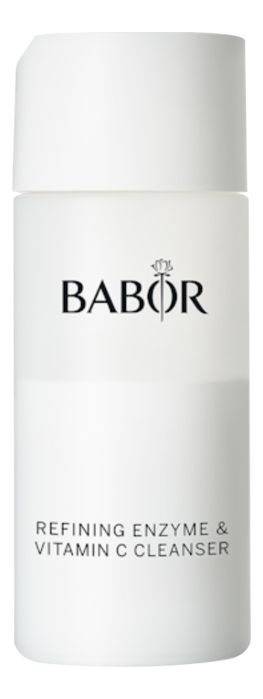 Очищающая ферментная пудра для лица Refining Enzyme & Vitamin C Cleanser от косметического бренда BABOR предназначена для очищения и деликатного пилинга кожи любого типа. Тонкодисперсная пудра с ферментами, каолином и витамином С эффективно очищает и сужает поры, восстанавливает свежесть и сияние кожи, осветляет пигментацию, убирает излишки кожного жира, матирует, борется с акне, борется со свободными радикалами. После применения очищающей пудры кожа становится чистой и сияющей, очищаются поры и выравнивается тон.