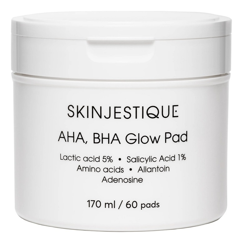 Состав:Кислотные пэды для сияния кожи лица AHA, BHA Glow Pad от Skinjestique содержит Water, Butylene Glycol, Lactic Acid, Glycerin, 1,2-Hexanediol, Potassium Hydroxide, Salicylic Acid, Betaine, Sodium PCA, Glycine, Serine, Glutamic Acid, Aspartic Acid, Leucine, Alanine, Lysine, Arginine, Tyrosine, Phenylalanine, Threonine, Proline, Valine, Isoleucine, Histidine, Methionine, Cysteine, Sodium Citrate, Allantoin, Adenosine, Xanthan Gum, Ethylhexylglycerin, Disodium EDTA.