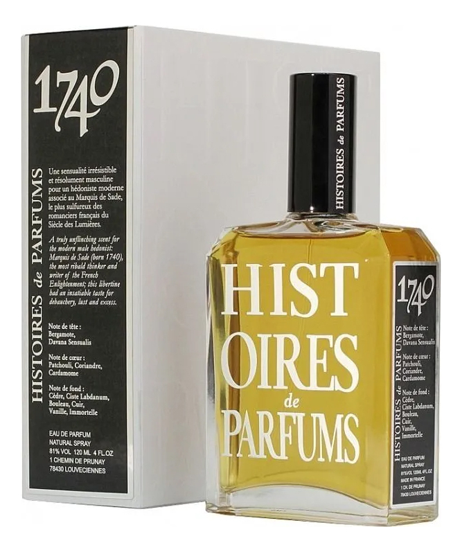 Histoires de Parfums Marquis De Sade — яркий и дерзкий мужской восточно-древесный парфюм, выпущенный в 2001 году французским нишевым парфюмерным брендом Histoires de Parfums. Ароматическая композиция посвящена Маркизу де Саду и стремится передать изысканность манер, благородство и утонченный вкус человека, который был проповедником новой философии свободы и вседозволенности.Созданный парфюмером Жеральдом Гисланом аромат подчеркивает сексуальность и чувственность мужчины, его независимость и отсутствие предрассудков. Ароматная пряность и согревающая пикантность заряжают энергией и верой в себя, дарят уверенность и дерзость, которые привлекают женщин и вызывают уважение у мужчин.В верхнем аккорде парфюма горьковато-пряная полынь соединяется с освежающим цитрусовым дыханием бергамота. В сердце композиции теплая, чуть землистая пряность пачули звучит в обрамлении специевых оттенков кардамона и кориандра. Тогда как финальный аккорд Histoires de Parfums Marquis De Sade демонстрирует запах кожи и дымно-ароматический ладан, окутанные смолистыми тонами кедра, элеми, древесными нотами березы, пряно-цветочным ароматом бессмертника и утонченной сладостью ванили.
