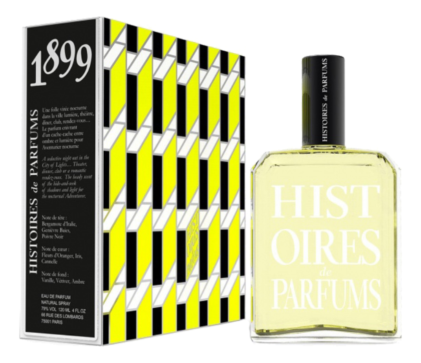 Аромат Histoires de Parfums 1899 Hemingway («Хистуар де Парфюмс 1899 Хемингуэй») был выпущен в 2013 году. Автором композиции стал парфюмер Gerald Ghislain. Аромат для мужчин и женщин принадлежит к семейству восточных пряных. Яркий, мощный и взрывной, этот аромат переливается всеми оттенками своего букета, раскрывая в себе ноты экзотических пряностей, свежесть цитрусовых и пудровую томность амбры. Стильный флакон простой формы украшен крупными буквами и металлической крышкой. Похожий по самобытности и элегантности аромат-унисекс - Le Labo Moscow Benjoin 19.Histoires de Parfums 1899 Hemingway – это композиция из нот бергамота, можжевельника и черного перца в окружении нюансов апельсинового цвета, ириса и корицы, ванили, ветивера и амбры.