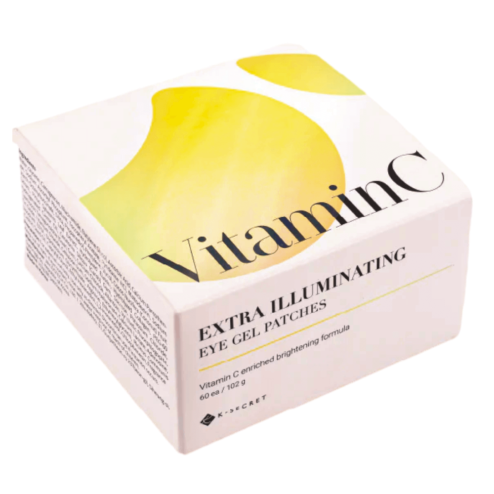 Осветляющие патчи для век с витамином С K-SECRET Extra Illuminating Eye Gel Patches тонизируют, устраняют тусклость, придают здоровое сияние. Увлажняют, уменьшают припухлости в области вокруг глаз, оказывают антиоксидантное действие. Содержат витамин E, ниацинамид, гидролизованный эластин и коллаген.