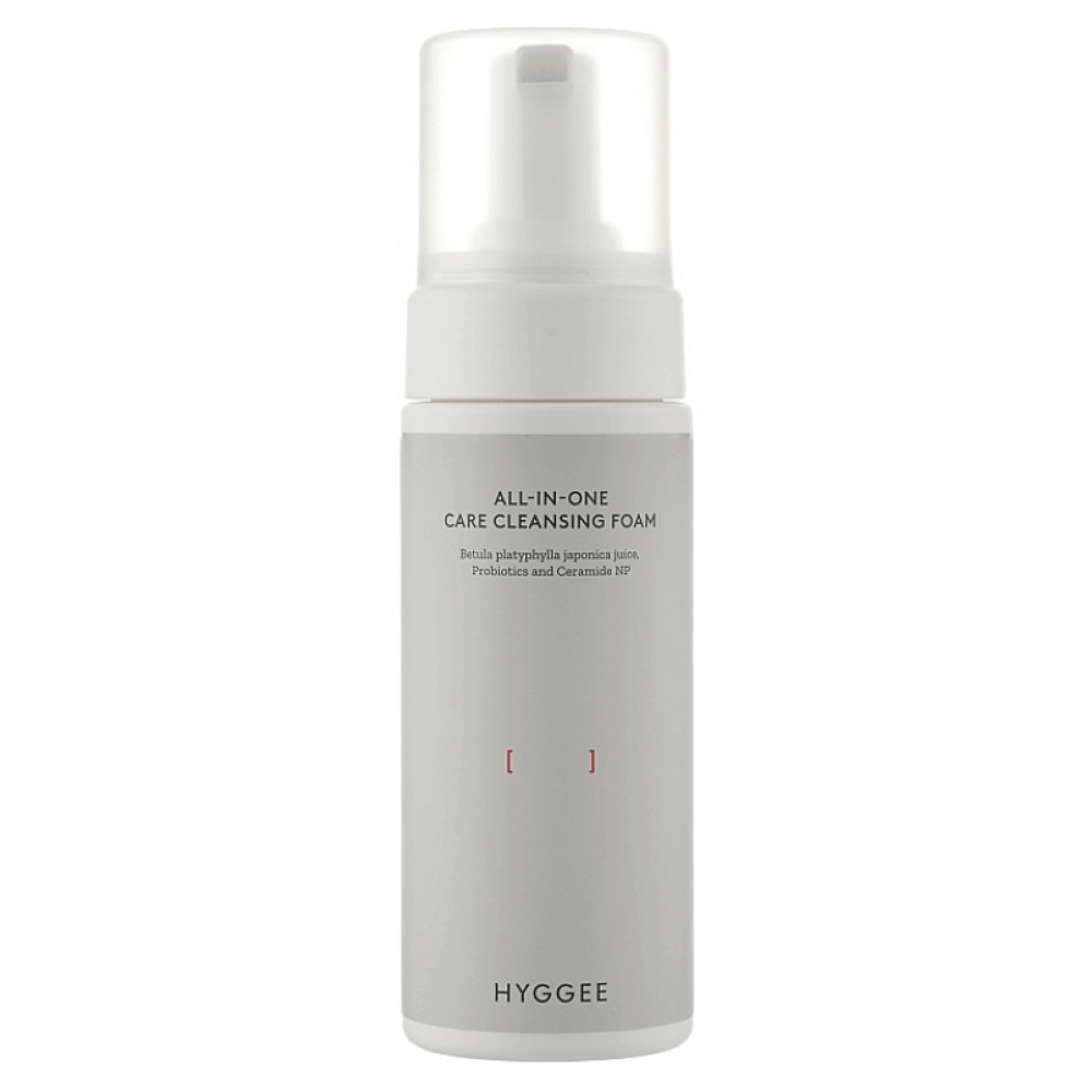 Универсальная кислородная пенка для умывания с берёзовым соком HYGGEE All-In-One Care Cleansing Foam мягко и деликатно очищает кожу, не вызывает раздражений и не провоцирует появление сухости. Удаляет остатки макияжа, пыль, загрязнения и излишки кожного сала. Подходит даже для чувствительной кожи. Содержит берёзовый сок, пробиотики, экстракт спаржи и зелёного чая.