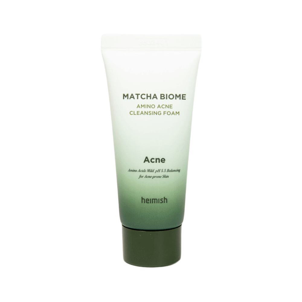 Пенка для умывания Heimish Matcha Biome Amino Acne Cleansing Foam сочетает в себе антибактериальные свойства и деликатное очищение. Она удаляет загрязнения и остатки макияжа, сохраняя кожу увлажнённой и защищая от сухости. Экстракт матчи в составе усиливает защитные функции и выравнивает тон, а пробиотики поддерживают микробиоту, избавляя от тусклости.