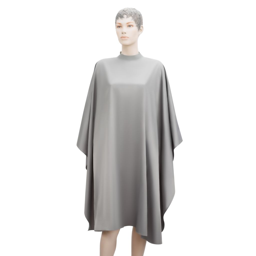 Пеньюар для стрижки.Предназначен для защиты одежды в процессе стрижки, окрашивания, мытья головы. Стильный и современный пеньюар изготовлен из полиэстера. Ворот из силикона с застежкой крючки, надежно прилегает к коже не пропуская даже мелких волосков. Большой размер надежно защитит одежду клиента.