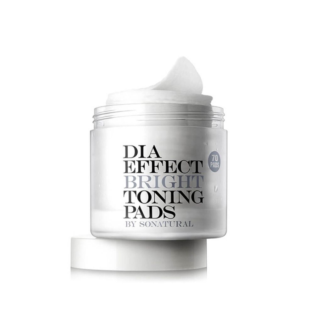 Осветляющие пилинг-пэды So Natural Dia Effect Bright Toning Pads для ровной и сияющей кожи. Активизируют обменные процессы на клеточном уровне, выравнивая микрорельеф эпидермиса. Осветляют пигментные пятна и пост-акне, делают черные точки менее заметными и придают лицу здоровый, сияющий вид.