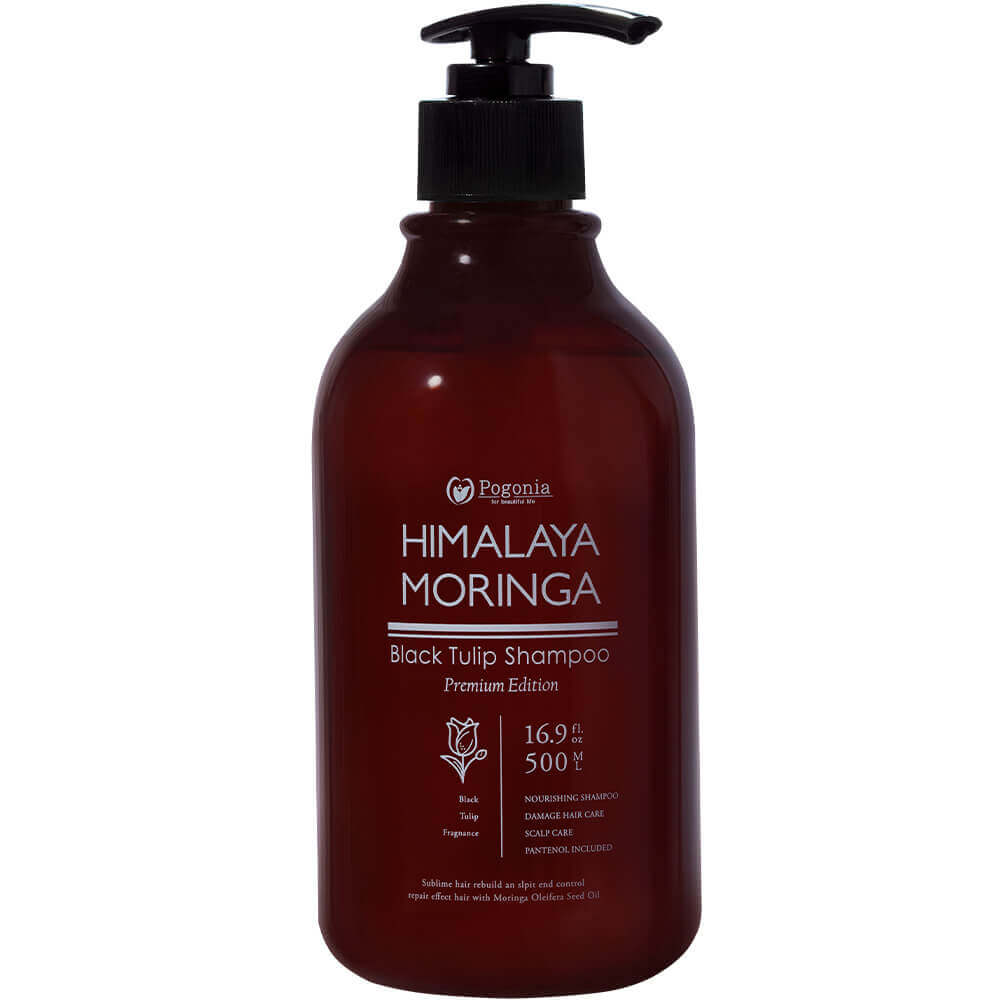 Шампунь с маслом моринги для жирной кожи головы Pogonia Himalaya Moringa Black Tulip Shampoo бережно, но эффективно очищает, удаляет остатки стайлинга и излишки себума у корней волос и не пересушивает кончики. Обогащен комплексом растительных экстрактов и масел в высокой концентрации для глубокого увлажнения и питания волос. Содержит BHA, цинк пиритион, ниацинамид, масло моринги, экстракт розмарина и ягод асаи.