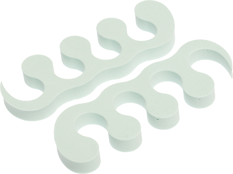 Стильные разделители хорошо держат необходимое расстояние между пальцами, не давая им соприкасаться. Материал прочный, но достаточно гибкий, его легко и просто содержать в чистоте. С разделителями можно легко передвигаться на ногах, не боясь испортить свежий педикюр.