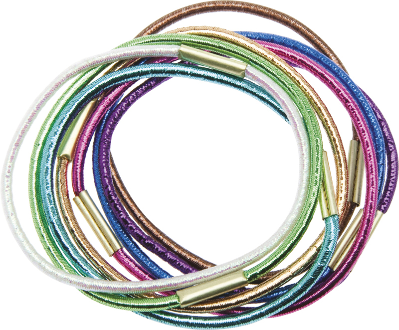 Материал изделий не боится влаги, даже при использовании в бассейне резинка не потеряет своих свойств. Блестящая оплётка резинок создаст праздничное настроение и подчеркнёт вашу индивидуальность. Экономичное предложение и выгодная комплектация набора,из восьми разноцветных резинок, позволит подобрать необходимые для разнообразных причёсок на каждый день.