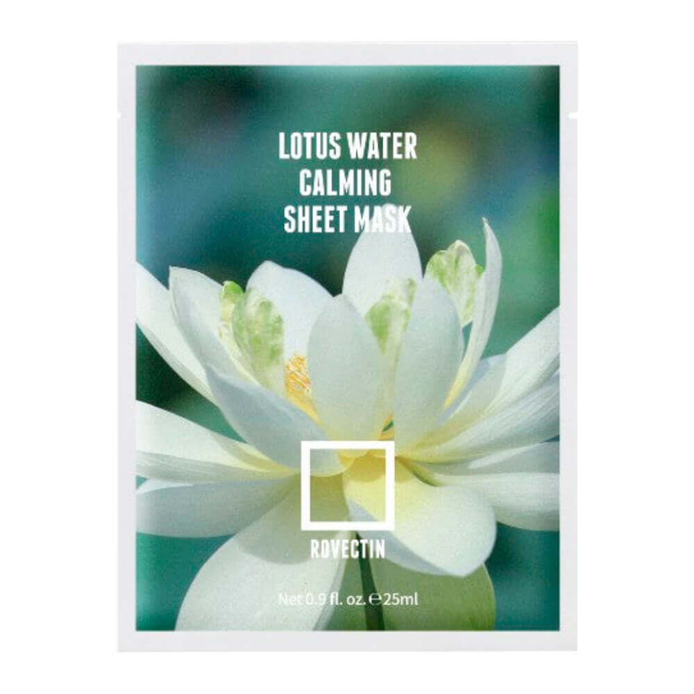 Тканевая маска для выравнивания тона Rovectin Clean Lotus Water Calming Sheet Mask осветляет нежелательную пигментацию, улучшает цвет лица, успокаивает и смягчает, глубоко увлажняет и восстанавливает кожу. Маска пропитана эссенцией на основе 52% экстракта лотоса, содержит комплекс Aquaxyl, ниацинамид и глутатион, без парабенов, искусственных красителей и отдушек, минеральных масел. Продукт имеет уровень безопасности EWG Green.