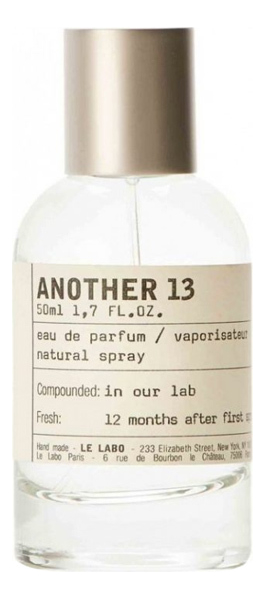 Le Labo Another 13 — гипнотический и уникальный древесный унисекс-парфюм, выпущенный 2010 году американским нишевым парфюмерным брендом Le Labo. Автором и создателем этой роскошной композиции является талантливый парфюмер Натали Лорсон.Композиция состоит из синтетического животного мускуса, что делает ANOTHER 13 вызывающим привыкание зельем, смешанным с другими тщательно отобранными ингредиентами, такими как медовая груша, яблоки и цитрусы, душистый жасмин и пряно-лесной дубовый мох, которые придают ему пикантность и блеск. Искусственно синтезированный аналог серой амбры (Ambrox) дарит композиции Le Labo Another 13 феерию теплых, сухих, глубоких древесных и амбровых нот и мускусных оттенков с анималистическими тонами.