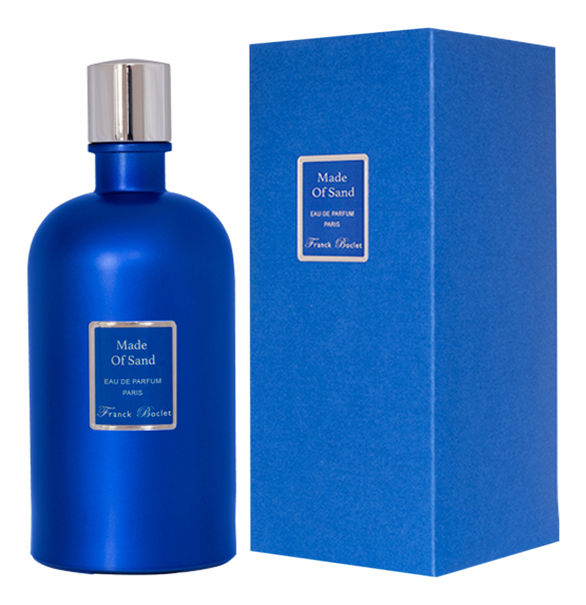 Franck Boclet Made Of Sand — красивый фужерный унисекс-парфюм, выпущенный в 2022 году под маркой французского нишевого парфюмерного бренда Franck Boclet. Аромат является частью коллекции Blue Oriental Collection, вдохновленной многочисленными поездками дизайнера Франка Бокле в Марокко, в частности в город Марракеш. Коллекция уходит своими корнями в богатую историю парфюмерного ремесла на Востоке.В коллекцию входят четыре аромата, Rock The Kasbah, Made of Sand, Sweet Dream In Sahara и Rock N Rai, каждый из которых посвящен Марокко. Флаконы коллекции имеют традиционную форму, а их насыщенный синий цвет — дань марокканской культуре, от садов Мажорель до берберских шарфов и города Шефшауэн.Ароматическая композиция Franck Boclet Made Of Sand рисует чарующие образы бескрайних пустынь и горячих дюн Марокко. В начале звучания парфюм дарит свежесть камфоры, пряно-хвойные оттенки можжевельника и горьковато-цитрусовый запах кардамона. В сердечном аккорде мятно-перечная герань соседствует с камфорными оттенками эвкалипта и горьковато-пряным запахом выброшенной на морской берег коряги. Тогда как в финальном аккорде хвойно-дымный белый кедр сочетается с древесно-мускусным кашмераном и ветивером. А нежный пряно-лесной запах дубового мха придает композиции особую притягательность.