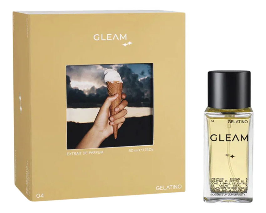 Gleam London Gelatino — сладкий цитрусовый унисекс-аромат, выпущенный в 2025 году британским нишевым брендом Gleam London. Это ольфакторное воплощение беззаботного летнего дня, наполненного солнечным светом и ностальгией о детстве.
