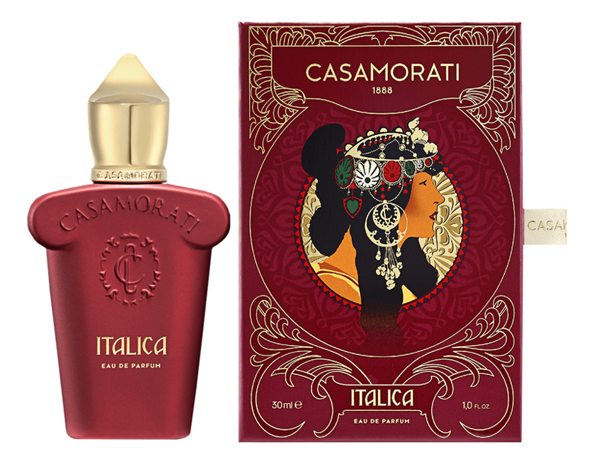 Casamorati 1888 Italica – мягкий, бархатистый, манящий и обольстительный восточный унисекс парфюм с утонченными древесными и гурманскими акцентами. Аромат выпущен итальянским нишевым парфюмерным домом Xerjoff и одет в характерный для бренда винтажный флакончик, на этот раз бархатисто-бордового оттенка, украшенный белой шелковой кисточкой.Симфония ароматов начинается с нежного сливочного запаха молока, в котором растворяются бархатисто-пряные нотки шафран и горьковатая пряность миндаля. Сердечный аккорд дарит обольстительный поцелуй сладостной ванили с озорным намеком конфет ирисок. А на прощание парфюм одаривает мягким, бархатистым ароматическим шлейфом, сотканным из теплых, уютных древесных нот кедра и сандала, подсвеченных нежнейшим белым мускусом.