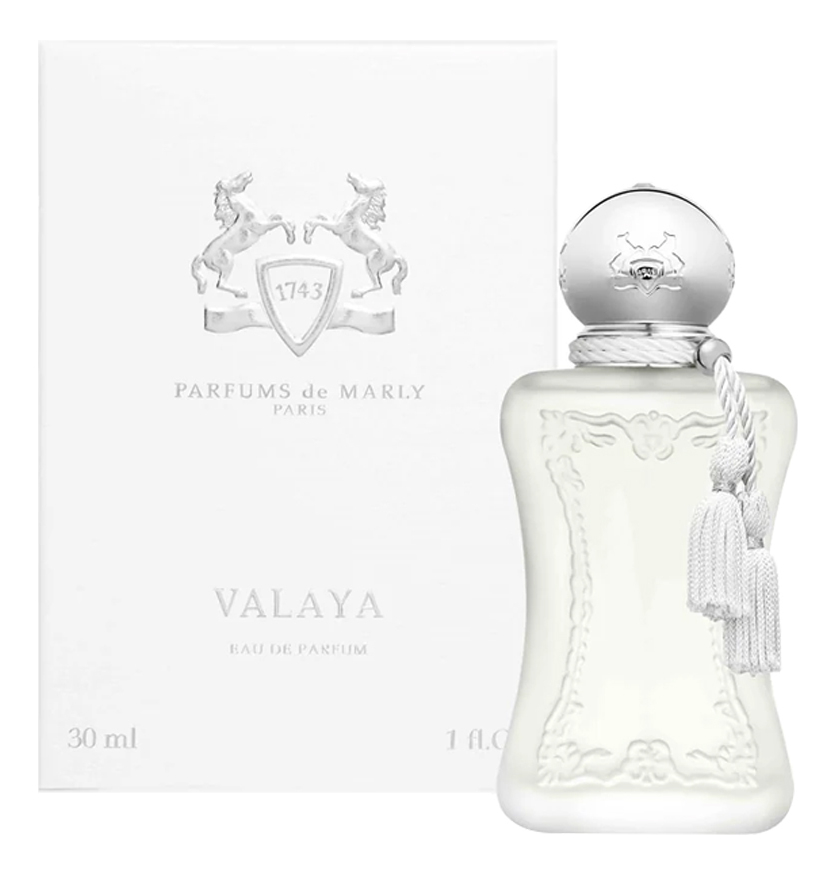Parfums de Marly Valaya — женский цветочно-мускусный аромат, выпущенный в 2023 году французским брендом Parfums de Marly. Элегантный аромат, созданный Жюльеном Шпрешером, представляет собой уникальную игру кодов, материалов и тонких контрастов. Воспоминание о коже, ласкаемой хлопковой вуалью. Сияющая аура и в то же время неосязаемая мягкость юбок, которые женщины носили под одеждой в 18 веке и современность белой рубашки, надетой прямо на кожу. Аромат пересматривает наследие 18-го века с элегантностью и современностью.Свежие верхние ноты бергамота, мандарина и сладкого белого персика в композиции мягко и органично переходят в сердечном аккорде в смесь белых цветов, чьи нежные шелковистые лепестки покрыты капельками прохладной росы. Пряно-древесные ноты ветивера и фруктовые оттенки экзотической петалии придают сердечному аккорду многогранность звучания. А завершает звучание парфюма Parfums de Marly Valaya нота акилгалавуда с яркими акцентами пачули, перца и агаровой древесины. Ее уникальное звучание подчеркивает мягкое ванильно-мускусно-амбровое послевкусие.
