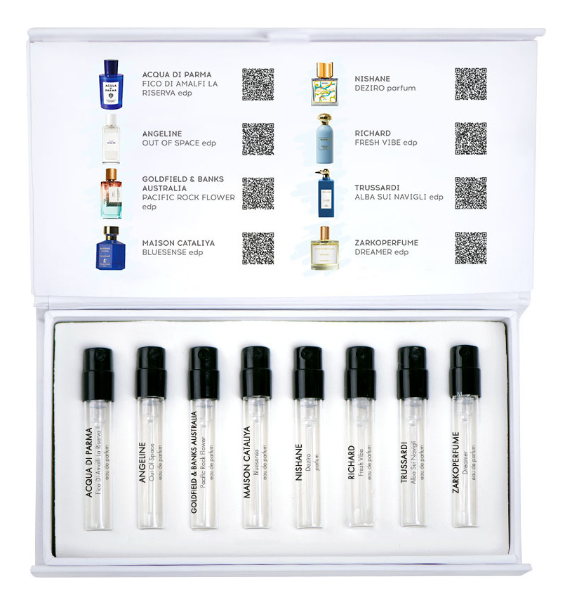 Покупая набор, вы получаете восемь эксклюзивных парфюмов, которые можно использовать не только для выбора духов, но и для ежедневного ношения и создания различных модных образов.
