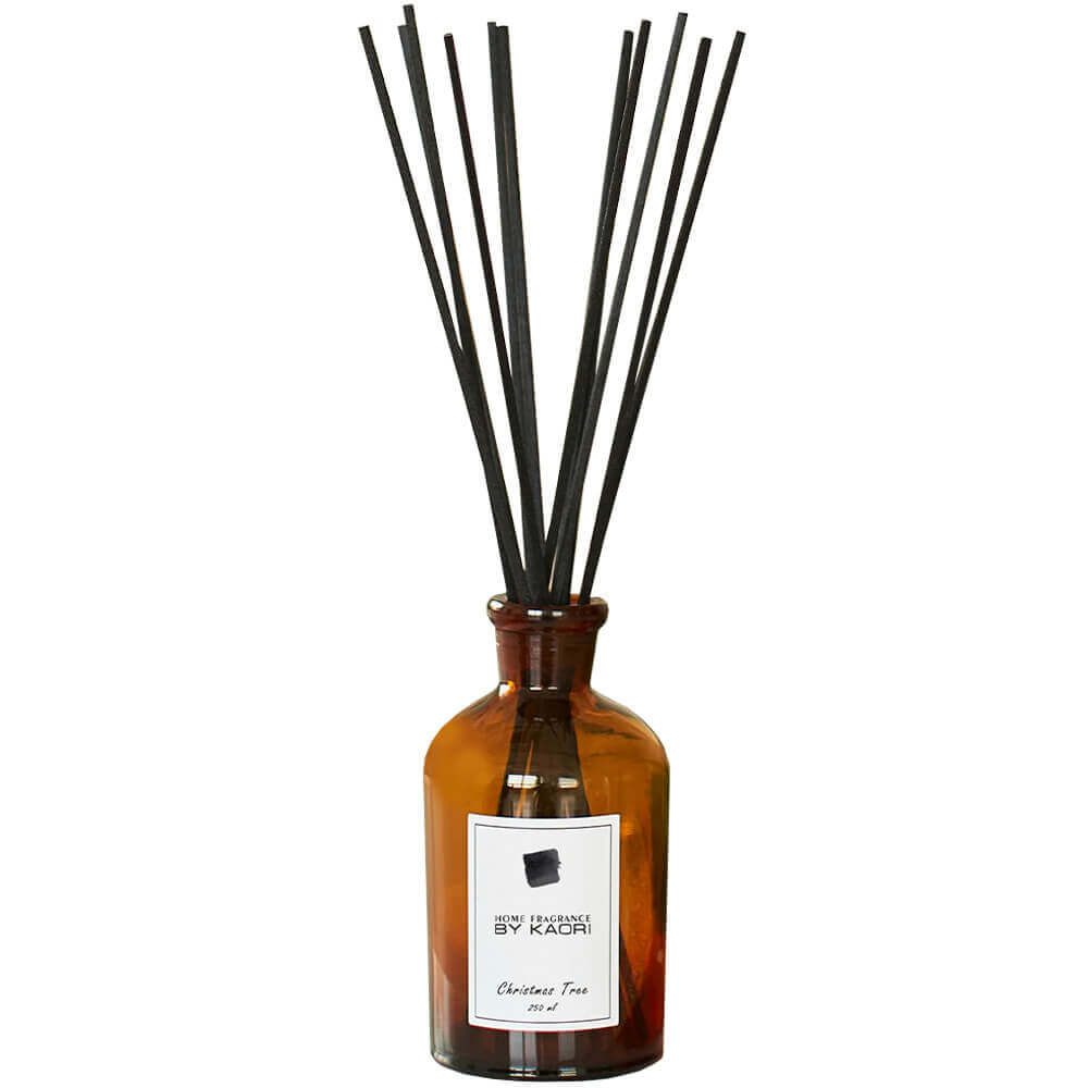 Диффузор с хвойным ароматом ели и мандаринов BY KAORI «Christmas Tree» дарит праздничное настроение и создаёт волшебную новогоднюю атмосферу. Диффузор представляет собой стильный стеклянный флакон с ароматической жидкостью и палочками из микрофибры, которые источают аромат, наполняя дом или любое другое помещение потрясающей парфюмерной композицией. Аромадиффузор обладает средней степенью насыщенности, подходит для помещений обычного размера — комнат, гостиных.