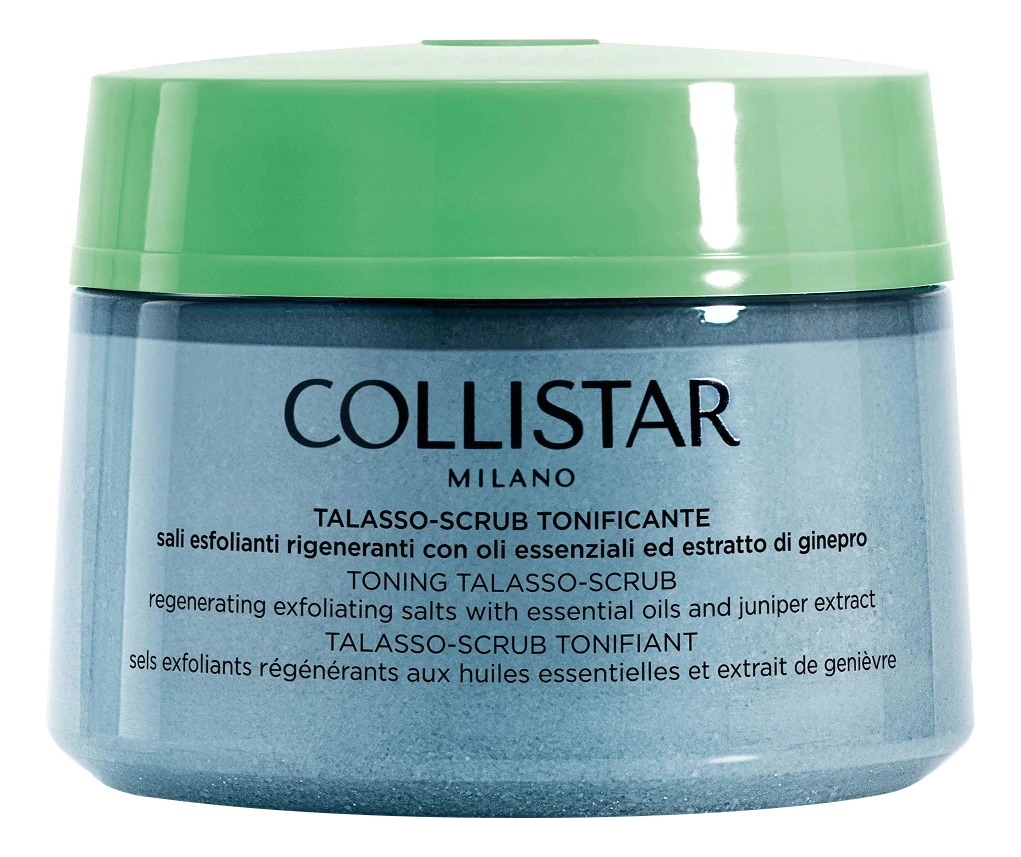От производителя:Collistar Тонизирующий талассо-скраб для тела с морской солью Talasso-Scrub Tonificante это настоящее сокровище для вашей кожи. Сочетающий в себе преимущества талассотерапии и ароматерапии, скраб обогащен эфирными маслами и экстрактом можжевельника, который имеет экстраординарные свойства для улучшения состояния кожи.Насыщенный специальной смесью морских солей с различными размерами гранул, скраб обеспечивает стимуляцию микроциркуляции, тонизированию тканей кожи, вывод токсинов и дренаж. Сочетание растительных масел семян Lentiscus (фисташка мастичная), кунжута и винограда дополняет формулу, обеспечивая увлажнение и питание кожи.Скраб имеет свежий и бодрящий аромат, который погружает в атмосферу итальянского средиземноморья. Он дарит чувство силы и благополучия благодаря сбалансированному сочетанию чистейших эфирных масел можжевельника, шалфея, тонизирующего тимьяна и успокаивающей лаванды. Интенсивные древесные аккорды кедрового дерева и кипариса придают коже приятный аромат и ощущение свежести на целый день.Способ применения:Размешайте скраб в баночке и нанесите на тело массажными движениями. Особое внимание уделите огрубевшим участкам кожи. Смойте водой.При нанесении на влажную кожу скраб действует более деликатно. Для интенсивного отшелушивания его можно использовать на сухой коже. Рекомендуется применять 1–2 раза в неделю.Состав:Collistar Тонизирующий талассо-скраб для тела с морской солью Talasso-Scrub Tonificante содержит: SODIUM CHLORIDE, CAPRYLIC/CAPRIC TRIGLYCERIDE, ISOPROPYL PALMITATE, PARFUM, VITIS VINIFERA SEED OIL, SESAMUM INDICUM SEED OIL, SIMMONDSIA CHINENSIS SEED OIL, ISOPROPYL MYRISTATE, EUCALYPTUS GLOBULUS LEAF OIL, TRITICUM VULGARE GERM OIL, PISTACIA LENTISCUS SEED OIL, JUNIPERUS COMMUNIS FRUIT OIL, THUJA OCCIDENTALIS LEAF OIL, CUPRESSUS SEMPERVIRENS LEAF OIL, PROPYLENE GLYCOL DICAPRYLATE/DICAPRATE, BHT, ALGAE EXTRACT, TOCOPHERYL ACETATE, CI 61565, CI 60725, LINALOOL.