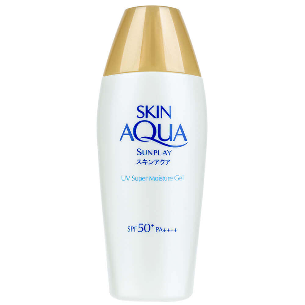 Солнцезащитное молочко для лица и тела Skin Aqua Sunplay UV Super Moisture Gel SPF50+ PA++++ надёжно защищает от ультрафиолета, при этом увлажняет и смягчает кожу в течение дня. Предотвращает фотостарение, появление пигментации и солнечных ожогов, препятствует сухости. Содержит фотостабильные химические фильтры нового поколения, гиалуроновую кислоту, полисахариды тремеллы, витамин C, эктоин, экстракты портулака и какао.