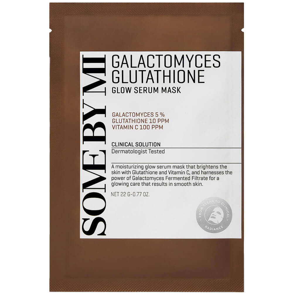 Осветляющая тканевая маска с галактомисисом Some By Mi Galactomyces Glutathione Glow Serum Mask увлажняет и успокаивает кожу, устраняя тусклость и уменьшая выраженность пигментации. Маска смягчает огрубевшие участки, устраняет шелушение, сокращает выраженность покраснений и других пигментных пятен. Удерживает влагу в коже и укрепляет естественный защитный барьер, выравнивает микрорельеф. Содержит 5% галактомисиса, глутатион, витамин C, 8 видов гиалуроновой кислоты, ниацинамид, эритритол, пантенол, пептид меди и экстракт рисовых отрубей.