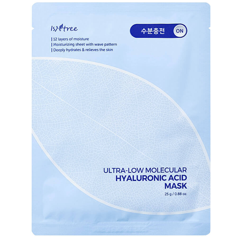 Ультраувлажняющая маска с гиалуроновой кислотой IsNtree Ultra-Low Molecular Hyaluronic Acid Mask успокаивает, смягчает и разглаживает кожу, устраняет ощущение сухости и стянутости. Борется с шелушением и раздражением, препятствует обезвоженности, надолго удерживает влагу в клетках. Содержит 8 видов гиалуроновой кислоты, морскую воду, сквалан, аллантоин, трегалозу, экстракты ячменя, ромашки и василька.