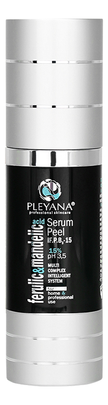 От производителя:Пилинг-сыворотка для лица Serum Peel With Ferulic & Mandelic Acid марки Pleyana предназначена для жирной и комбинированной кожи. Продукт улучшает состояние кожи при наличии угревой сыпи и фотостарении, защищает эпидермис от негативного воздействия солнца, эффективен при гиперпигментации кожи, наличии телеангиэктазии и розацеа, избыточной жирности и очень сухой коже.Средство оказывает мощное противомикробное и противовоспалительное действие, регулирует обновление клеток и предохраняет их от мутаций, активизирует выработку эластина и коллагена, нейтрализует свободные радикалы, выравнивает тон и рельеф лица, снижает проявление акне, придаёт коже матовый оттенок, делает её более чистой, эластичной и гладкой. Результат заметен уже после первого использования. Активными компонентами формулы являются: ниацинамид, экстракт ксимении американской и комплекс из 6 основных кислот (феруловая, миндальная, молочная, салициловая, азелаиновая и янтарная).Способ применения:Нанесите сыворотку на очищенную кожу на 5-15 минут, затем смойте водой, избегая попадания средства в глаза. После этого нанесите на кожу гель-сыворотку для проблемной кожи Stop-Acne Pleyana и соответствующий вашему типу кожи завершающий препарат серии Pleyana. Процедуру рекомендуется проводить 1-2 раза в неделю.Предупреждение:Нельзя использовать продукт в следующих случаях:- при аллергической реакции на входящие в состав пилинга компоненты;- при гнойных и инфекционных заболеваниях кожи;- при наличия воспалений на коже;- при наличии ран и порезов;- при герпесе в стадии обострения. Состав:Пилинг-сыворотка для лица Pleyana Serum Peel With Ferulic & Mandelic Acid имеет следующий состав: Ethoxydiglycol, Propylene Glycol, Triethyl Citrate, Polyacrylate-1 Crosspolymer, Ferulic Acid, Mandelic Acid, Lactic Acid, Water, Azelaic Acid, Salicylic Acid, Succinic Acid, Propanediol, Ximenia Americana Bark Extract.