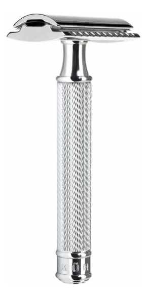 Безопасная бритва Traditional от известного бренда Muehle выполнена из хромированного металлического сплава. Изделие имеет закрытый гребень, который надежно удерживает острое лезвие. Длина станка составляет 95 мм. Он имеет достаточно прочную и комфортную ручку, которая удобно размещается в ладони.Безопасная бритва является близким аналогом опасного станка. Ее угол более выражен, что делает бритье наиболее эффективным. Изогнутое лезвие обеспечивает плавное скольжение станка по коже. Изделие изготовлено из гальванически обработанного серебристо-белого хромированного сплава. Детали станка покрыты прочным никелем.Бритва – прекрасный вариант для комфортного влажного бритья. Она легко скользит и тщательно сбривает лишние волоски.