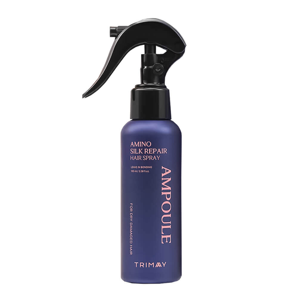 Спрей-сыворотка Trimay Amino Silk Repair Hair Spray Ampoule восстанавливает повреждённые волосы, разглаживает кутикулу, предотвращает ломкость и сечение. Оказывает термозащитное действие, увлажняет и смягчает, оказывают антистатический эффект. Имеет цитрусово-цветочный аромат. Содержит 5 пептидов, 17 аминокислот, комплексы Black 8 Сomplex и Blue complex, 7 видов гиалуроновой кислоты Moist-7 complex, коллаген, кератин и протеины шёлка.