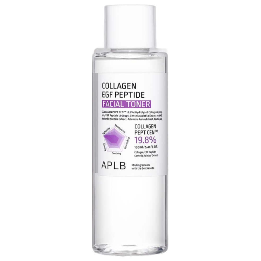 Тонер для упругости кожи с пептидами APLB Collagen EGF Peptide Facial Toner повышает тургор, восстанавливает упругость и эластичность тканей. Способствует разглаживанию кожных заломов и сокращает выраженность морщин. Восстанавливает липидный барьер. Содержит коллаген, экстракт центеллы, лотоса и полыни.