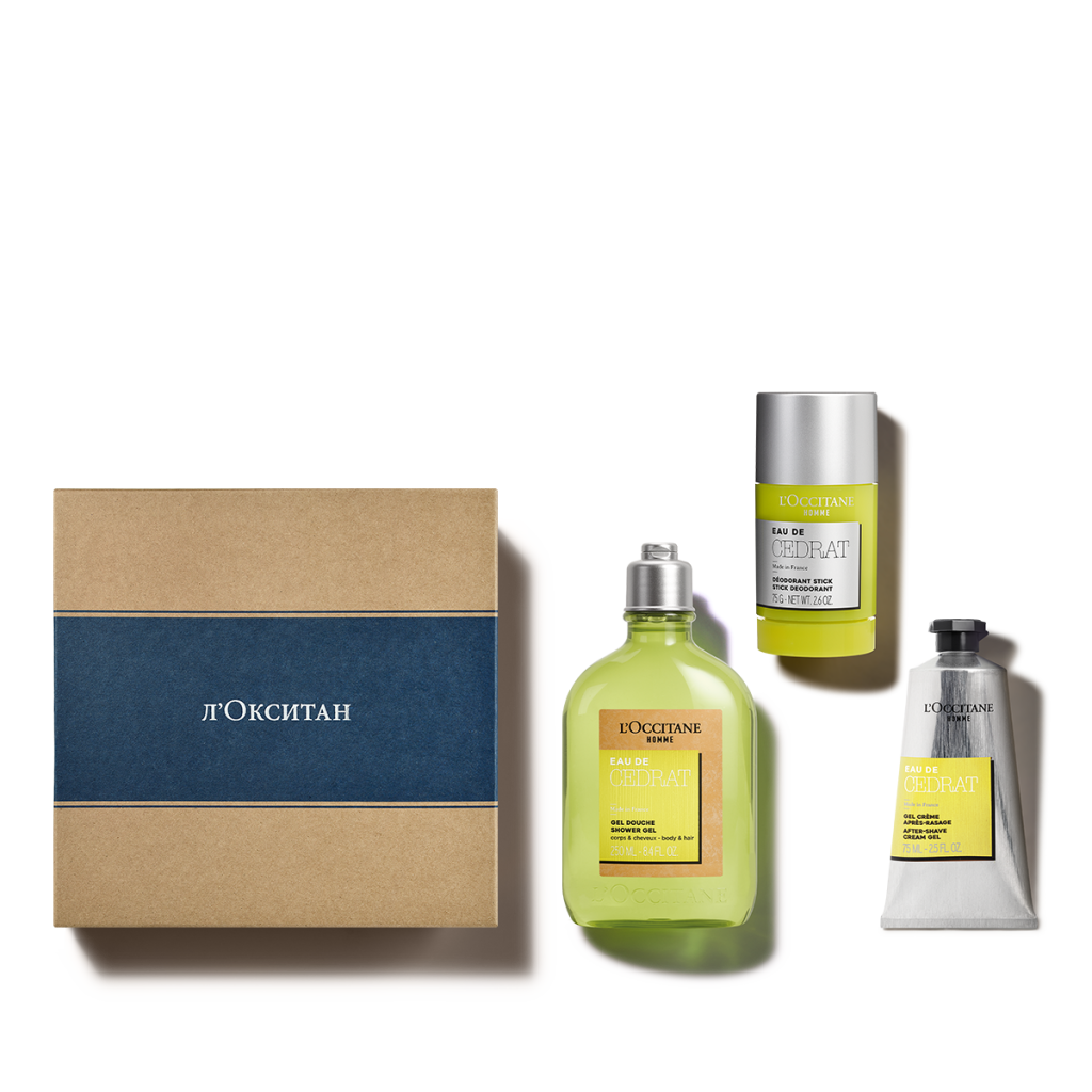 Состав:<br>Гель для душа Цедрат 250 мл<br>Бальзам после бритья Цедрат 75 мл<br>Деодорант-стик Цедрат 75 г<br>Подарочная упаковка