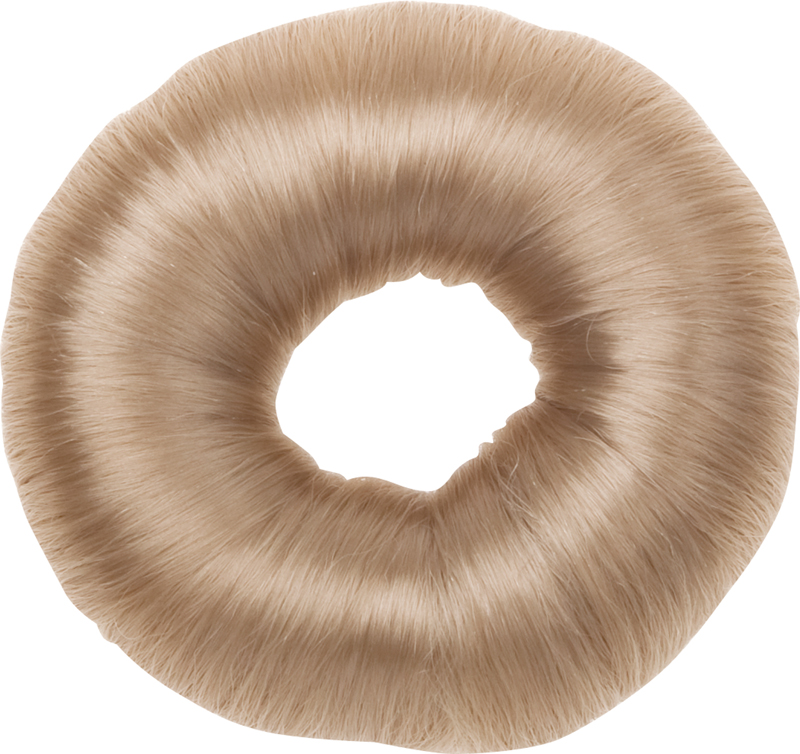 Валик для прически DEWAL HO-5115 Blond поможет сформировать красивый пучок или создать пышную прическу на его основе. Для его крепления дополнительно понадобятся резинки и шпильки, которые не входят в комплект поставки. Формирование пучка начинается с хвоста, который пропускается через кольцо валика и закрепляется резинкой, а затем шпильками.