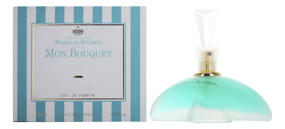 Парфюм, воплотивший в себе всю молодость, нежность и духовную чистоту, носит название Marina de Bourbon Mon Bouquet («Марина де Бурбон. Мой букет»). Эти духи были созданы в 1996 году. За все годы своего существования, этот волшебный аромат успел обрести множество почитательниц, ведь любая леди хочет хоть на мгновение ощутить себя юной принцессой.Также поклонницам мягких и нежных ароматов наверняка придутся по душе духи Marina de Bourbon Notre Dame, волнующие воображение и покоряющие сердца. Парфюм Marina de Bourbon Mon Bouquet таит в себе все тайны благоухания садов Тюильри и сказочных цветов парка в Версале.Начальными нотами этого волшебного аромата стали пармская фиалка и грейпфрут. Ноты «сердца» это роза, гардения и ландыш. Восхитительный шлейф волнует ароматами ириса и персика, которые своим звучанием придают фруктово-цветочную мягкость.