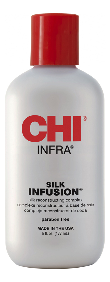 От производителя:Состав восстанавливающего геля «Шелковая инфузия» Silk Infusion от корпорации CHI был разработан в США для придания шелковистости и блеска волосам.Гель способен придать локонам атласную мягкость и восстановить постепенно при регулярном использовании структуру волос. Комплекс активных элементов, основанный на натуральном шелке, поможет сухим и нормальным волосам обрести силу и приятную гладкость, а также восстановиться в случае повреждения агрессивными химическими составами.Волосы становятся послушнее и мягче благодаря соевым протеинам и пшенице в составе шампуня. Глубокое увлажнение и значительно более легкое расчесывание волос гарантированы, укладка теперь не будет занимать много времени.Способ применения:Небольшое количество средства нанесите на выбранные пряди или на всю длину волос (в зависимости от типа прически).Состав:Cyclomethicone, Dimethiconol, Cyclohexasiloxane, Heptyl Undecylenate, Propylene Glycol Diheptanoate, Phenoxyethanol, Tuber Magnatum Extract, Crambe Abyssinica Seed Oil, PEG 2 Dimeadowfoamamidoethylmonium Methosulfate, Squalane, Limonene, Butylphenyl Methlyproprional, Hydroxyisohexyl 3 Cyclohexene Carboxaldehyde, Pearl Powder.