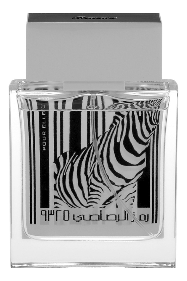 Rumz Al Rasasi 9325 Pour Elle — освежающий, природный по звучанию и просто очень красивый женский восточный аромат, выпущенный в 2014 году известным арабским парфюмерным брендом Rasasi. Черно-белый принт с изображением зебры на лаконичном прозрачном прямоугольном флаконе, намекает на тематику джунглей и нетронутой человеком природы.Ароматическая композиция встречает ароматом сочных хрустящих листьев фиалки и тонкой специевой пряностью гвоздики. На смену ароматам свежей зелени вступительного аккорда в сердце композиции приходит хвойно-дымный запах величественного кедра и сладкие пряно-пудровые нюансы цветущего ириса. Завершая звучание, парфюм одаривает бархатисто-сливочным запахом сандала, теплой пряностью листьев пачули, нежным прикосновением ванили, волной теплого, волнующего мускуса и чуть смолистыми оттенками янтаря.