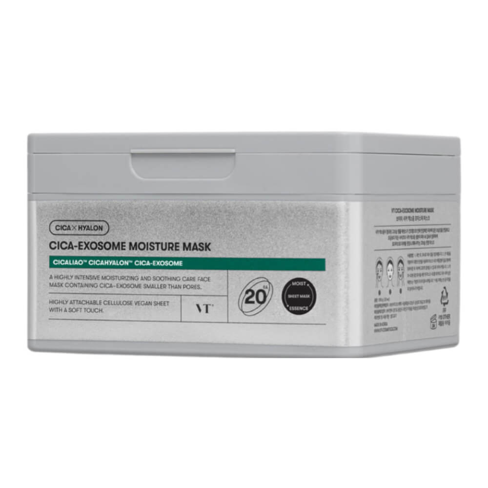 Набор увлажняющих масок VT Cosmetics Cica-Exosome Moisture Mask помогает уменьшить раздражение, зуд и покраснение на коже. Основа маски обильно пропитана эссенций с заживляющим и восстанавливающим свойствами. Подходит для кожи с розацеа и куперозом, укрепляет стенки капилляров и сокращает проявление сосудистой сетки. Содержит комплекс аминокислот, масло ши, экзосомы центеллы азиатской и молочные протеины.