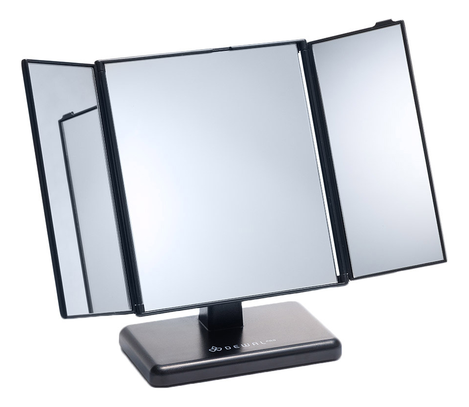 Зеркало настольное трехстворчатое MR-7014 немецкого бренда Dewal выполнено из прочного чёрного пластика, упаковано в плотную картонную коробку. Комфортный и лёгкий аксессуар предназначен для демонстрации клиенту стрижки или укладки сзади на затылочной части головы.