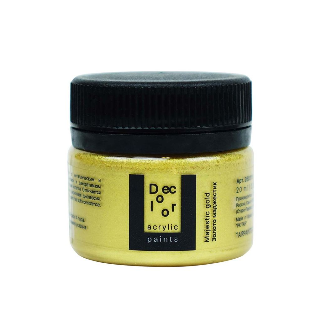 Художественные акриловые краски «Деколор» используются для имитации поверхности различных металлов. По консистенции — густые, приближенные к масляным краскам. Используются в живописных и декоративных техниках. Прекрасно подходят для объёмной живописи благодаря своим характеристикам и консистенции, а также успешно используются в техниках «сухой кисти», нанесении через трафарет, золочении элементов и т.д. Декоративные акриловые краски «Хамелеон» обладают перламутровым эффектом и прекрасно подходят для декора на любых поверхностях. Это полупрозрачная краска на акриловой основе, содержащая интерференционные пигменты. Интересный радужный эффект, который особенно заметен на тёмном фоне, можно использовать поверх нанесённого изображения в живописи, декупаже или любой другой технике. Консистенция: густая. Укрывистость: средняя. Состав: акриловая дисперсия, слюдяные пигменты, наполнитель, загуститель, консерванты, вода. Все цвета выполнены с использованием 4-5 пигментов. Свойства: ·Имеют эластичный и механически прочный красочный слой; ·Разбавляется водой, акриловым лаком, разбавителем акриловых красок и т.п.; ·После высыхания приобретает водостойкость; ·Устойчивы к атмосферному воздействию, не изменяют цвет в течение 10 лет; ·Хорошая сцепляемость с поверхностью; ·Время высыхания в течение одного часа; ·Смешиваются между собой в любых соотношениях для получения промежуточных оттенков; ·Не содержат металлов, не окисляются.