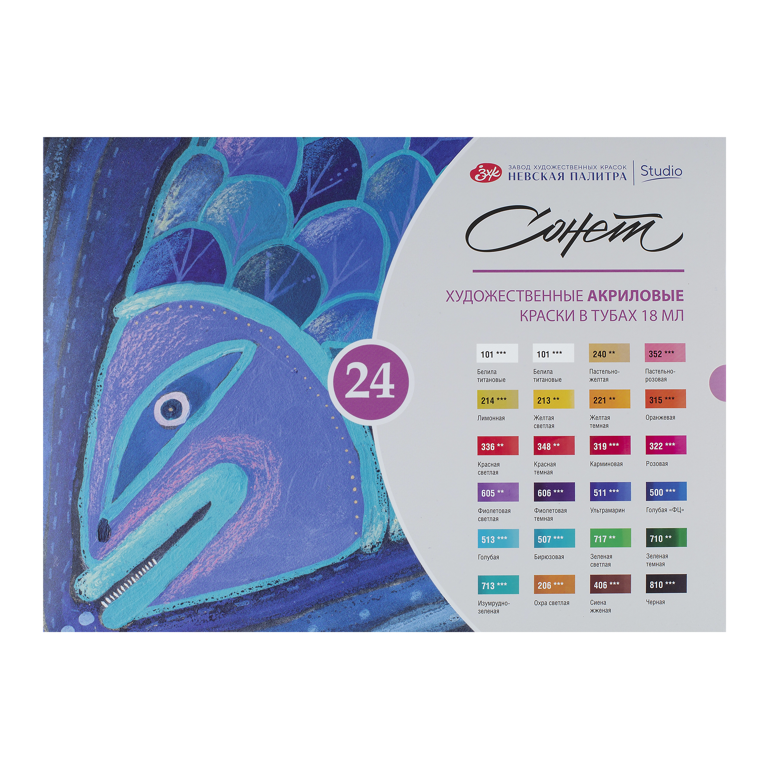 Акрил «Сонет» отличается яркостью и чистотой цвета. Краски этой серии универсальны в применении, они подойдут для художественных, декоративных, дизайнерских и других видов работ. За счет своей структуры краска хорошо ложится на различные поверхности: бумагу, кожу, картон, холст, дерево, металл. Все цвета смешиваются между собой. При высыхании образуется эластичная несмываемая пленка. Акрил «Сонет» производится заводом художественных красок Невская палитра, расположенным в городе Санкт-Петербурге. Завод уже более 80 лет выпускает продукцию для профессиональных художников и любителей творчества.