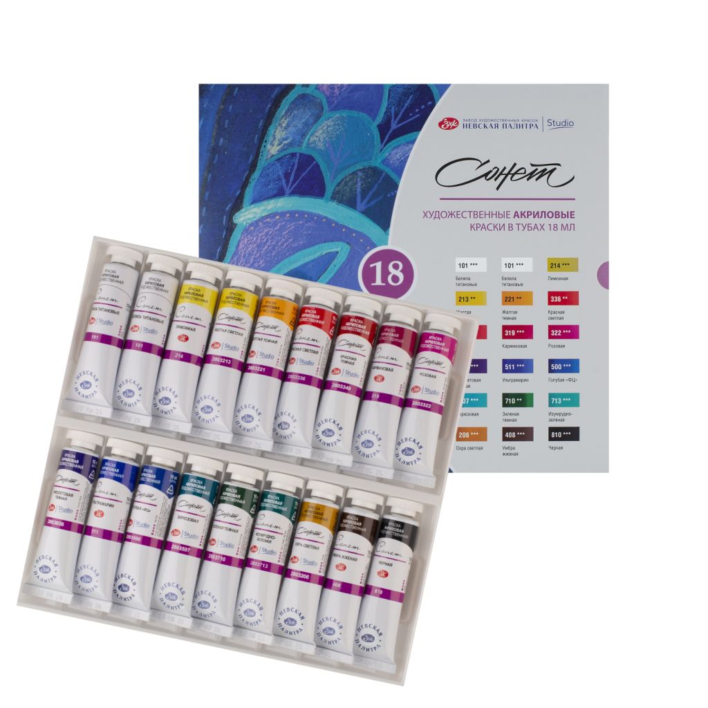 Акрил «Сонет» отличается яркостью и чистотой цвета. Краски этой серии универсальны в применении, они подойдут для художественных, декоративных, дизайнерских и других видов работ. За счет своей структуры краска хорошо ложится на различные поверхности: бумагу, кожу, картон, холст, дерево, металл. Все цвета смешиваются между собой. При высыхании образуется эластичная несмываемая пленка. Акрил «Сонет» производится заводом художественных красок Невская палитра, расположенным в городе Санкт-Петербурге. Завод уже более 80 лет выпускает продукцию для профессиональных художников и любителей творчества.