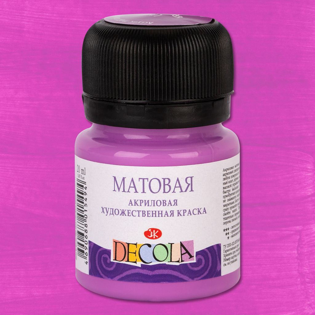 О серии: акрил Decola это современная акриловая краска для декоративного творчества. Палитра матового акрила Decola постоянно расширяется, на сегодняшний день в ней представлено около 30 различных цветов, которые выпускаются поштучно в баночках по 50 и 20 миллилитров и в наборах различной комплектации. Характеристика: акрил матовый Decola изготовлен на основе водной акриловой дисперсии. Для достижения художественных эффектов краски можно использовать в сочетании с медиумами и различными добавками. Все цвета хорошо смешиваются между собой и при необходимости разбавляются водой. После высыхания краска становится водостойкой и приобретает матовую поверхность. Применение: акриловые краски Decola подходят для работы на таких поверхностях, как бумага, холст, дерево, металл, стекло, кожа. Производство: глянцевый акрил Decola производится заводом художественных красок Невская палитра, расположенным в городе Санкт-Петербурге. Завод уже более 80 лет выпускает продукцию для профессиональных художников и любителей творчества.