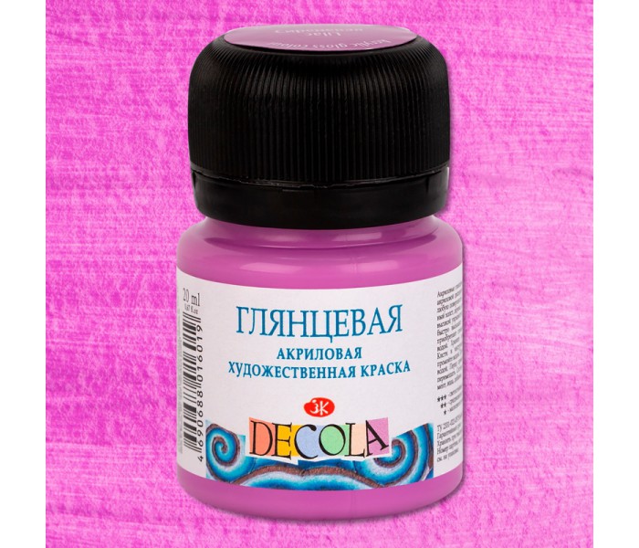 Акрил глянцевый «Decola» изготовлен на основе водной акриловой дисперсии. Для достижения художественных эффектов краски можно использовать в сочетании с медиумами и различными добавками. Краски «Decola» подходят для работы на таких поверхностях, как: бумага, холст, дерево, металл, стекло, кожа. Все цвета хорошо смешиваются между собой и при необходимости разбавляются водой. После высыхания краска становится водостойкой и приобретает глянцевый блеск. Палитра акрила глянцевого «Decola» постоянно расширяется, на сегодняшний день в ней представлено около 30 различных цветов, которые выпускаются поштучно в баночках по 20 и 50 миллилитров и в наборах различной комплектации. Акрил глянцевый «Decola» («Дек?ла») производится заводом художественных красок Невская палитра, расположенным в городе Санкт-Петербурге. Завод уже более 80 лет выпускает продукцию для профессиональных художников и любителей творчества.