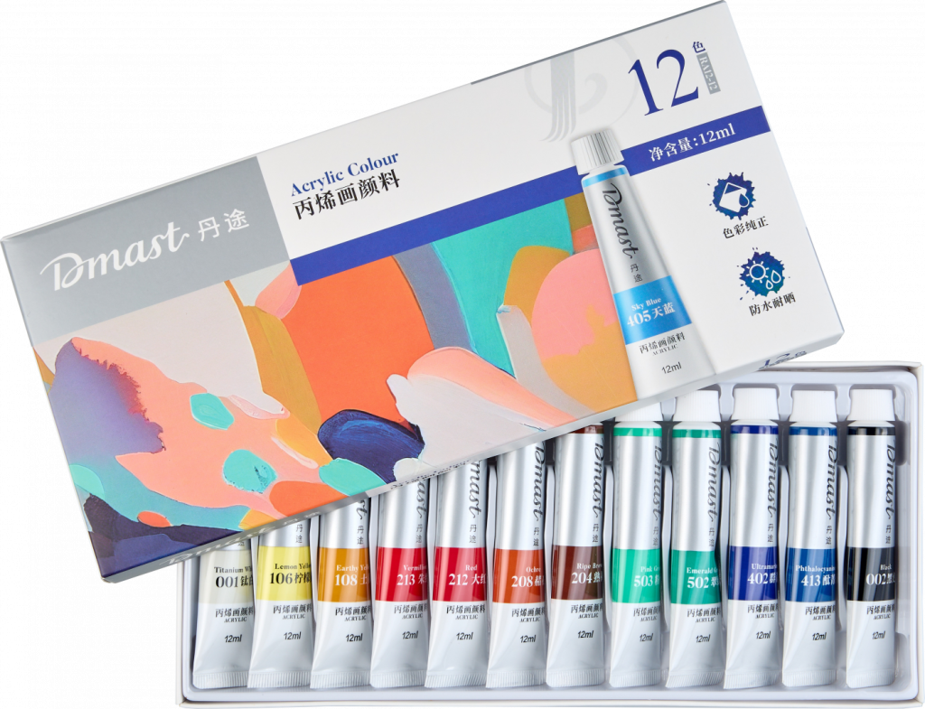 Художественные акриловые краски Dmast изготовлены из пигментов мелкого равномерного помола и акриловых смол. Высокая концентрация пигментов обеспечивает отличную цветопередачу и высокую светостойкость. Краски Dmast имеют чистые насыщенные цвета и глянцевый финиш, степень блеска 70 G. Краски обладают высокой адгезией, удерживают объём и подходят для пастозных техник. После высыхания красочный слой устойчив к воде и внешним воздействиям, благодаря чему акриловые краски Dmast имеют широкий спектр применения: они подходят для живописи, декора обуви, одежды и мебели, раскрашивания моделей, внутренних и наружных работ по росписи. Цвета в наборе: Белила титановые, Желтый лимонный, Желтый земельный, Вермиллион, Красный, Охра, Коричневый насыщенный, Зеленый розоватый, Зеленый изумрудный, Ультрамарин, Синий фталоцианин, Черный. Продукция бренда Dmast создана благодаря сочетанию высокого качества выверенных технологий бренда Pebeо и инновационным производственным процессам компании Deli — крупнейшего производителя канцелярских товаров в Азии.
