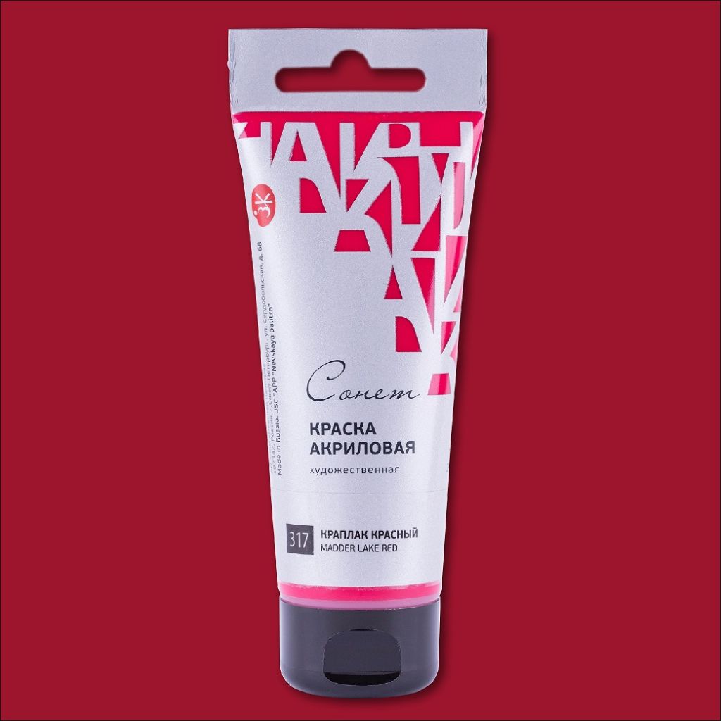 Акрил «Сонет» отличается яркостью и чистотой цвета. Краски этой серии универсальны в применении, они подойдут для художественных, декоративных, дизайнерских и других видов работ. За счет своей структуры краска хорошо ложится на различные поверхности: бумагу, кожу, картон, холст, дерево, металл. Все цвета смешиваются между собой. При высыхании образуется эластичная несмываемая пленка. Акрил «Сонет» представлен в серии из 35 цветов, в которой присутствуют серебро и золото. Краска выпускается в удобных пластиковых тубах по 75 миллилитров и в наборах различной комплектации. Акрил «Сонет» производится заводом художественных красок Невская палитра, расположенным в городе Санкт-Петербурге. Завод уже более 80 лет выпускает продукцию для профессиональных художников и любителей творчества.