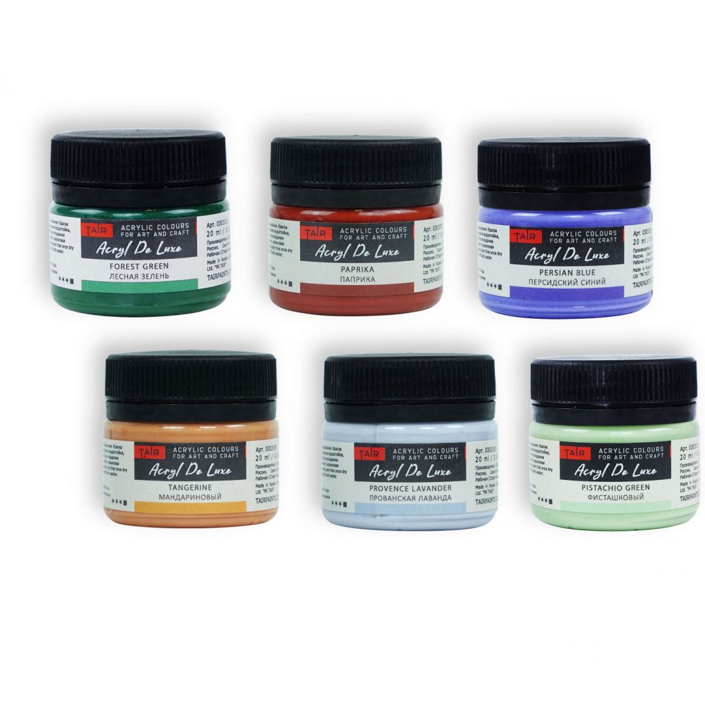 Художественные акриловые краски «Акрил Де Люкс» обладают кремовой консистенцией и потрясающим матовым финишем. Благодаря этому свойству краски напоминают по своим характеристикам меловые. Разнообразная и уникальная палитра красок позволяет создавать неповторимые работы и тратить меньше времени на получение нестандартного оттенка. Краска прекрасно подходят для живописи, декоративно-прикладного искусства и окрашивания любых поверхностей. Хорошая сцепляемость практически со всеми свободными от жира подложками. Консистенция: кремовая, текучая. Укрывистость: от средней до высокой. Состав: акриловая дисперсия, тонкодисперсные пигменты, наполнитель, консерванты, вода. Все цвета выполнены с использованием 4-5 пигментов. Свойства: • Высокоматовый, бархатистый красочный слой; • После высыхания приобретает водостойкость; • Высокий уровень светостойкости; • Хорошая сцепляемость с поверхностью; • Разбавляется водой, акриловым лаком, разбавителем акриловых красок и т.п.; • Время высыхания в течение одного часа; • При длительном хранении допускается частичное расслоение, перед употреблением обязательно перемешать.
