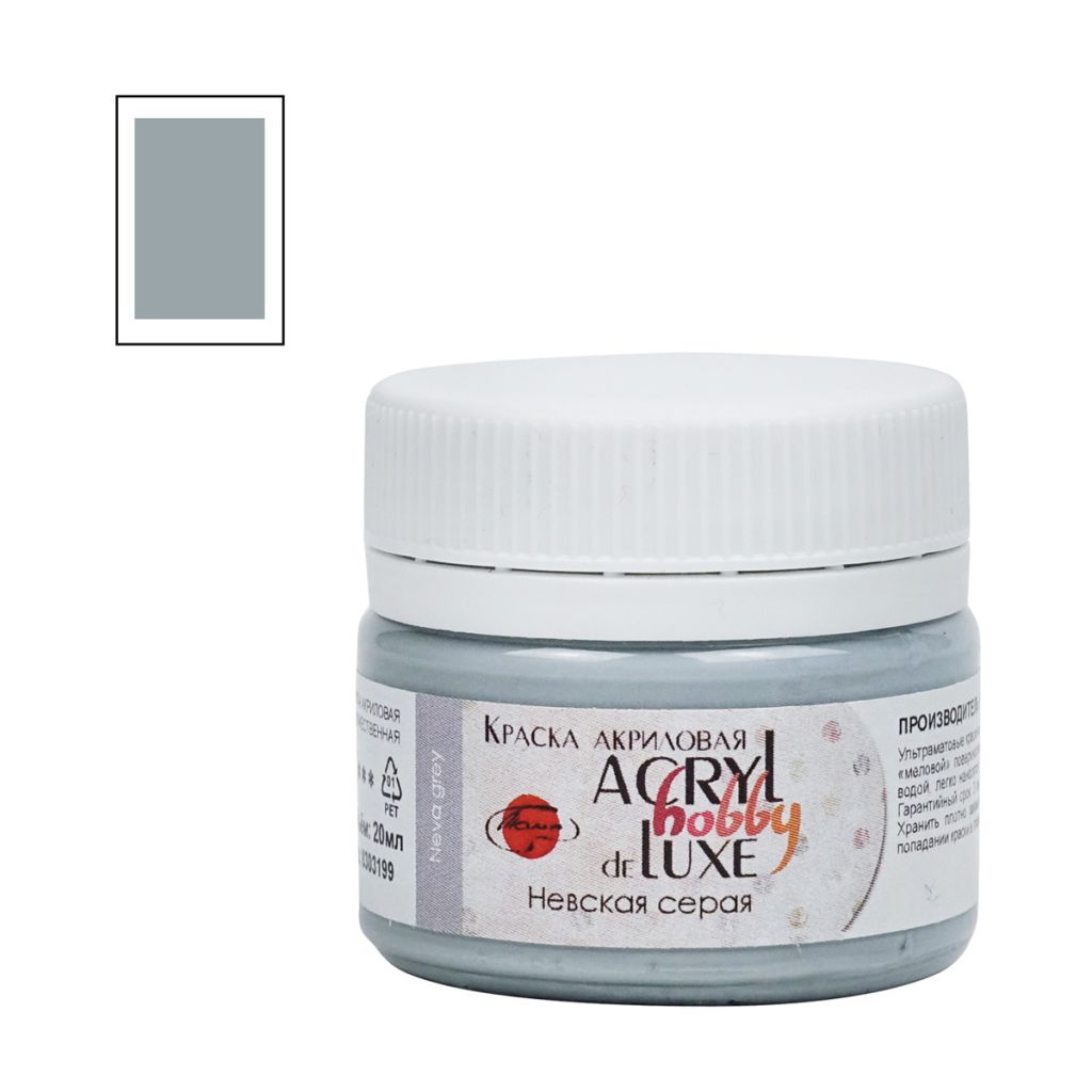Художественные акриловые краски «Акрил Де Люкс» обладают кремовой консистенцией и потрясающим матовым финишем. Благодаря этому свойству краски напоминают по своим характеристикам меловые. Разнообразная и уникальная палитра красок позволяет создавать неповторимые работы и тратить меньше времени на получение нестандартного оттенка. Краска прекрасно подходят для живописи, декоративно-прикладного искусства и окрашивания любых поверхностей. Хорошая сцепляемость практически со всеми свободными от жира подложками. Консистенция: кремовая, текучая. Укрывистость: от средней до высокой. Состав: акриловая дисперсия, тонкодисперсные пигменты, наполнитель, консерванты, вода. Все цвета выполнены с использованием 4-5 пигментов. Свойства: • Высокоматовый, бархатистый красочный слой; • После высыхания приобретает водостойкость; • Высокий уровень светостойкости; • Хорошая сцепляемость с поверхностью; • Разбавляется водой, акриловым лаком, разбавителем акриловых красок и т.п.; • Время высыхания в течение одного часа; • При длительном хранении допускается частичное расслоение, перед употреблением обязательно перемешать.