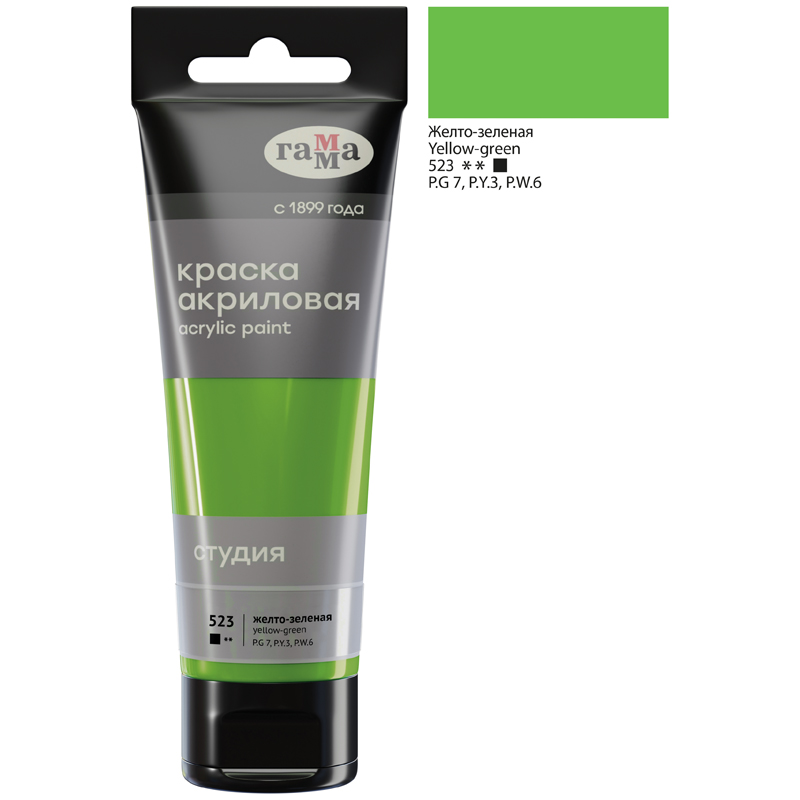 Акриловые краски "Студия" предназначены для художественно-живописных и декоративно-прикладных работ. Их отличают насыщенные цвета, высокая адгезия, отличная прочность. После высыхания становятся глянцевыми, практически не темнеют, специальные добавки позволяют максимально раскрыть красоту цвета. Акриловые краски "Студия" обладают густой консистенций, высокой разносимостью, позволяя писать в различных техниках живописи. Время высыхания от 10 минут до 1 часа в зависимости от толщины слоя краски. Подходят для бумаги, картона, грунтованного холста, дерева, стекла, кожи, ткани. Прозрачный корпус тубы позволяет увидеть цвет краски, а удобная крышка флип-топ предотвращает высыхание краски в тубе.