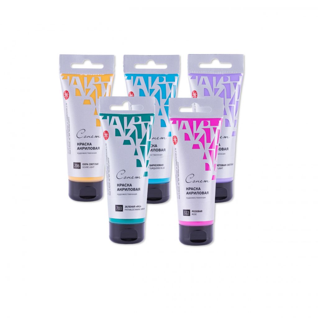 Акрил «Сонет» отличается яркостью и чистотой цвета. Краски этой серии универсальны в применении, они подойдут для художественных, декоративных, дизайнерских и других видов работ. За счет своей структуры краска хорошо ложится на различные поверхности: бумагу, кожу, картон, холст, дерево, металл. Все цвета смешиваются между собой. При высыхании образуется эластичная несмываемая пленка. Акрил «Сонет» представлен в серии из 35 цветов, в которой присутствуют серебро и золото. Краска выпускается в удобных пластиковых тубах по 75 миллилитров и в наборах различной комплектации. Акрил «Сонет» производится заводом художественных красок Невская палитра, расположенным в городе Санкт-Петербурге. Завод уже более 80 лет выпускает продукцию для профессиональных художников и любителей творчества.