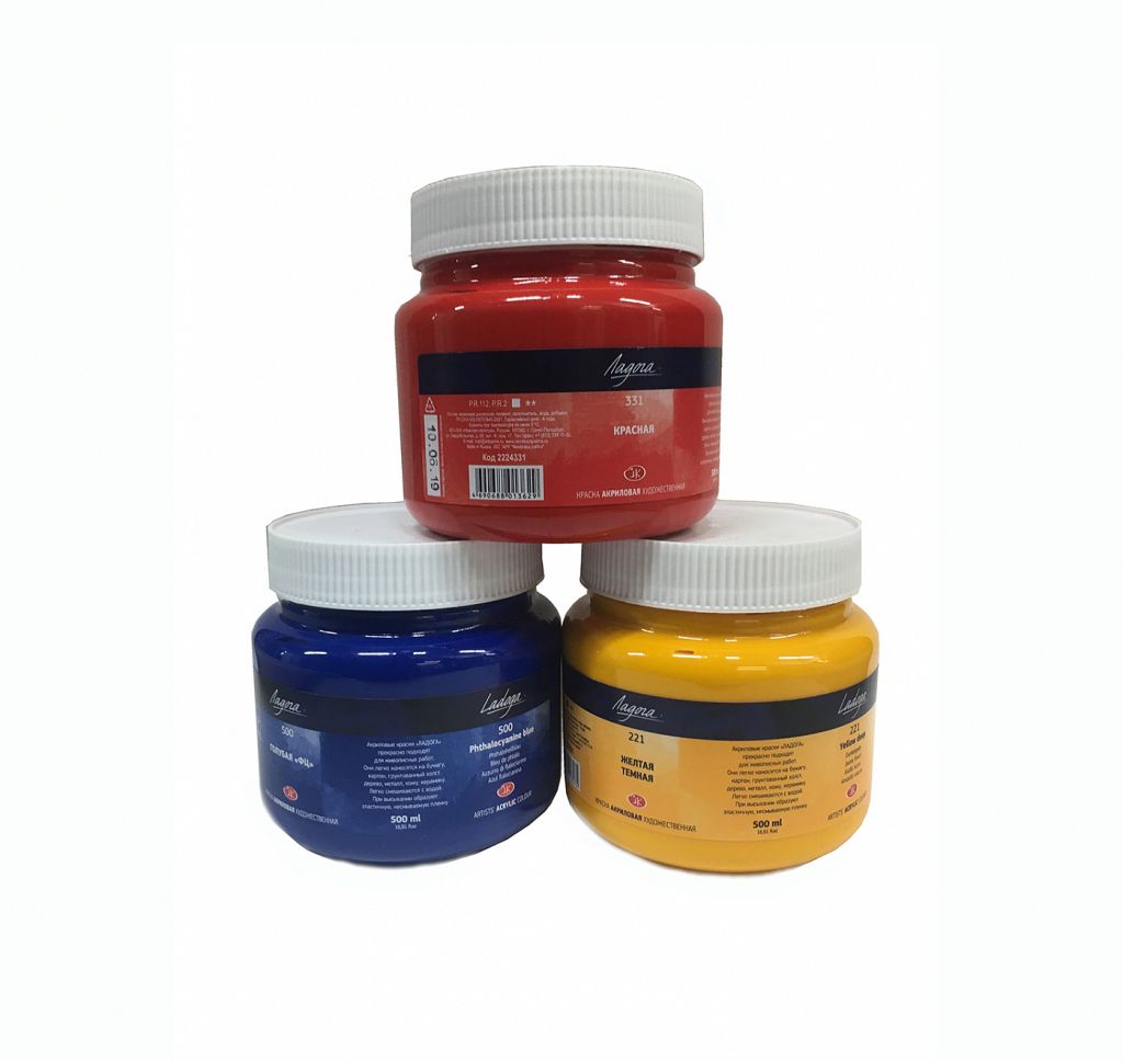В палитре акриловых красок «Ладога» дорогие неорганические пигменты были заменены на ор и полностью соответствуют оригинальным цветам. Это сделало акрил «Ладога» более доступным для потребителя. Для удобства пользователя цвета, созданные с заменой пигментов, обозначены на этикетке буквой «А» . Художественные акриловые краски «Ладога» имеют универсальное применение, они прекрасно подойдут как для художественных работ, так и для декоративных и дизайнерских. Краски хорошо ложатся на многие поверхности: бумагу, кожу, картон, холст, дерево, металл. Все цвета смешиваются между собой. Преимуществом данной серии является то, что помимо основных цветов в палитре представлено 13 цветов металликов в тубах по 46 миллилитров. Основные цвета представлены в тубах по 46 миллилитров и в баночках объемом 100, 220 и 500 миллилитров. Также акрил «Ладога» выпускается в наборах различной комплектации. Акрил «Ладога» производится заводом художественных красок Невская палитра, расположенным в городе Санкт-Петербурге. Завод уже более 80 лет выпускает продукцию для профессиональных художников и любителей творчества.