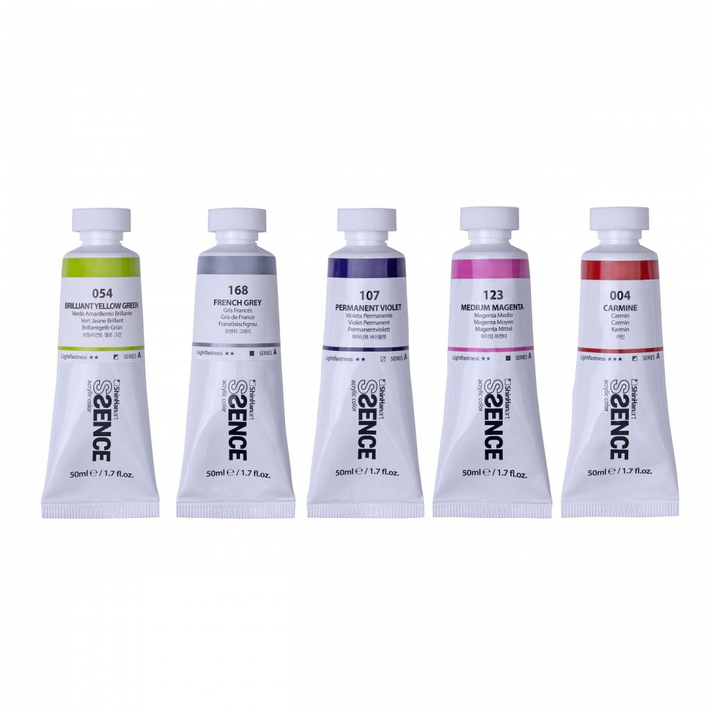О серии: акриловые краски Shinhan Ssence произведены из высококачественных пигментов и синтетической эмульсии акриловой смолы. Краски обладают мягкой кремообразной текстурой, легко набираются кистью и ложатся на поверхность гладким слоем. Такая текстура и превосходная адгезия позволяют наносить краски на различные виды поверхностей — холст, бумага, картон, стекло, пластик, дерево и другие. Все цвета хорошо смешиваются между собой, при желании могут разбавляться водой. Серия представлена 96 цветами, краски поставляются поштучно и в наборах различной комплектации. Применение: для художественных работ в различных техниках, в том числе подходят для заливок и техники флюид-арт. Производство: компания из Южной Кореи ShinHan Art International Inc славится своей продукцией, предназначенной для иллюстраторов, аниматоров, дизайнеров и архитекторов. Компания была основана в 1967 году и на тот момент называлась Haneel. Сегодня ShinHan Art International Inc славится во всем мире превосходным качеством своей продукции. Особенностью данной марки является внимание к деталям и дизайну. Применение современных технологий и следование традициям производства, позволяют создавать эргономичные, удобные и сверхнадежные канцелярские принадлежности. Продукция компании используются в различных сферах и популярна среди профессиональных художников, а также любителей творчества и хобби.