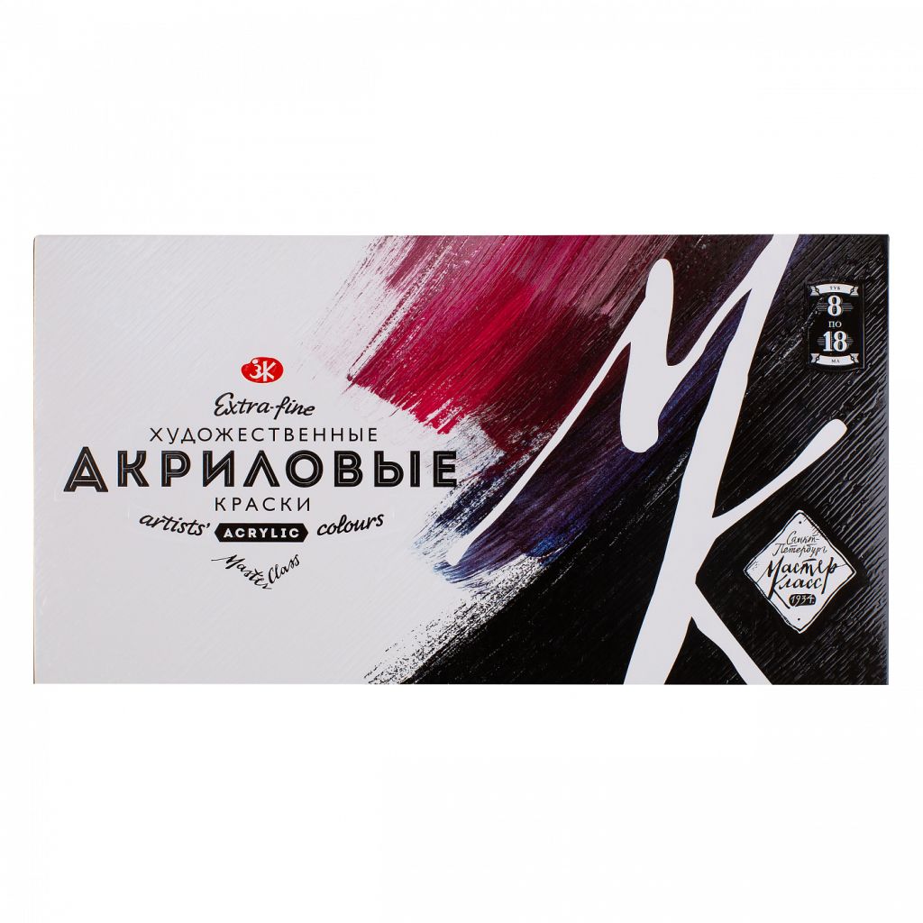 Акрил «Мастер-класс» производится заводом художественных красок Невская палитра, расположенным в городе Санкт-Петербурге. Завод уже более 80 лет выпускает продукцию для профессиональных художников и любителей творчества. Акрил «Мастер-класс» изготавливается из множества тонко тёртых пигментов и акриловой дисперсии, что позволяет обеспечить превосходную укрывистость, блеск, интенсивность и глубину цвета после высыхания. Для получения нужного оттенка краски разбавляются водой. Акрил «Мастер-класс» можно использовать на различных поверхностях, таких как бумага, картон, холст, дерево и др. Также им можно работать в различных техниках. Акриловые краски отлично подходят как для художественных, так и для дизайнерских работ. Комплектация набора: в данный набор входит 8 основных цветов акрила «Мастер-Класс» в тубах по 18 миллилитров. Набор упакован в картонную упаковку.